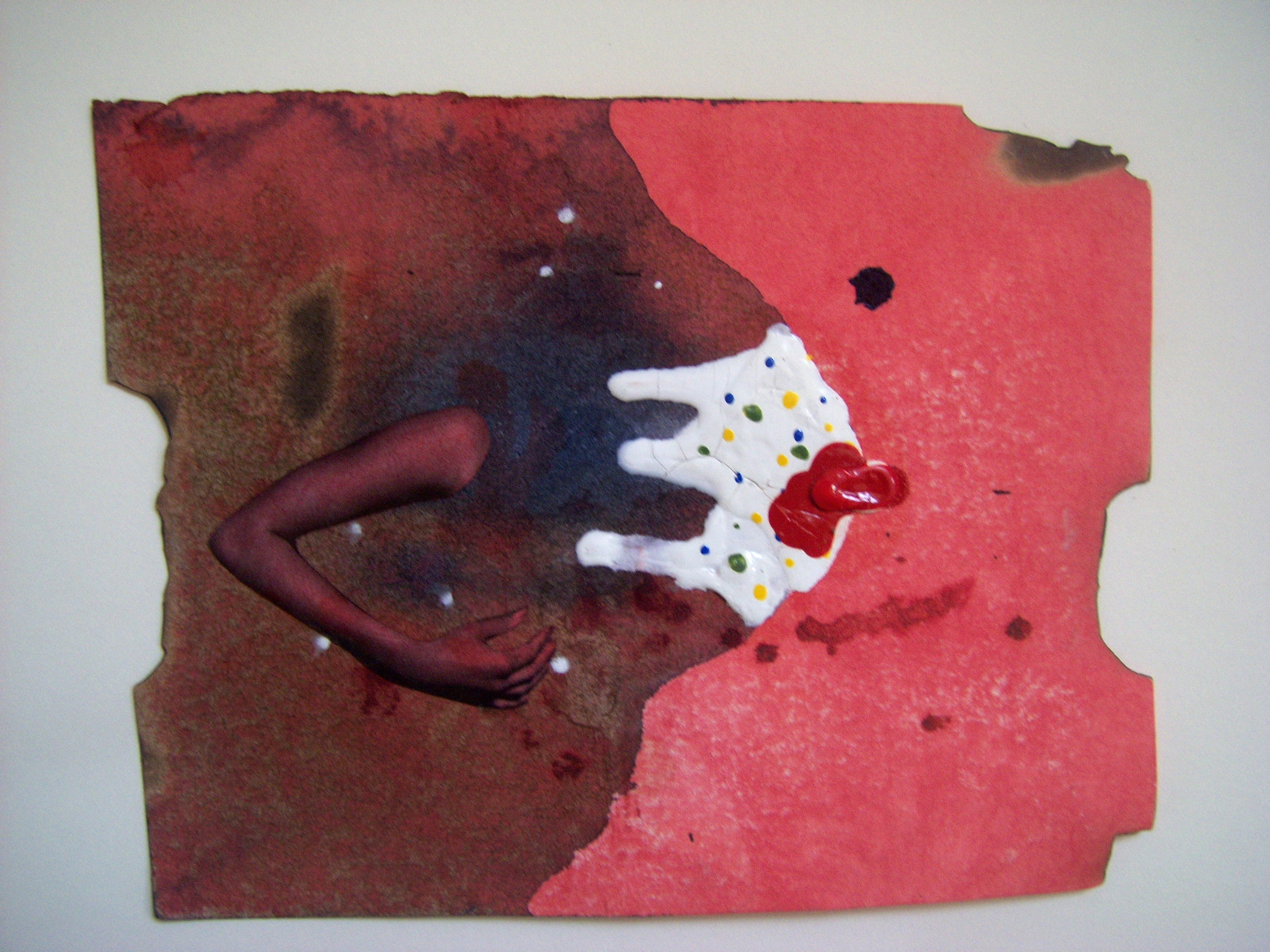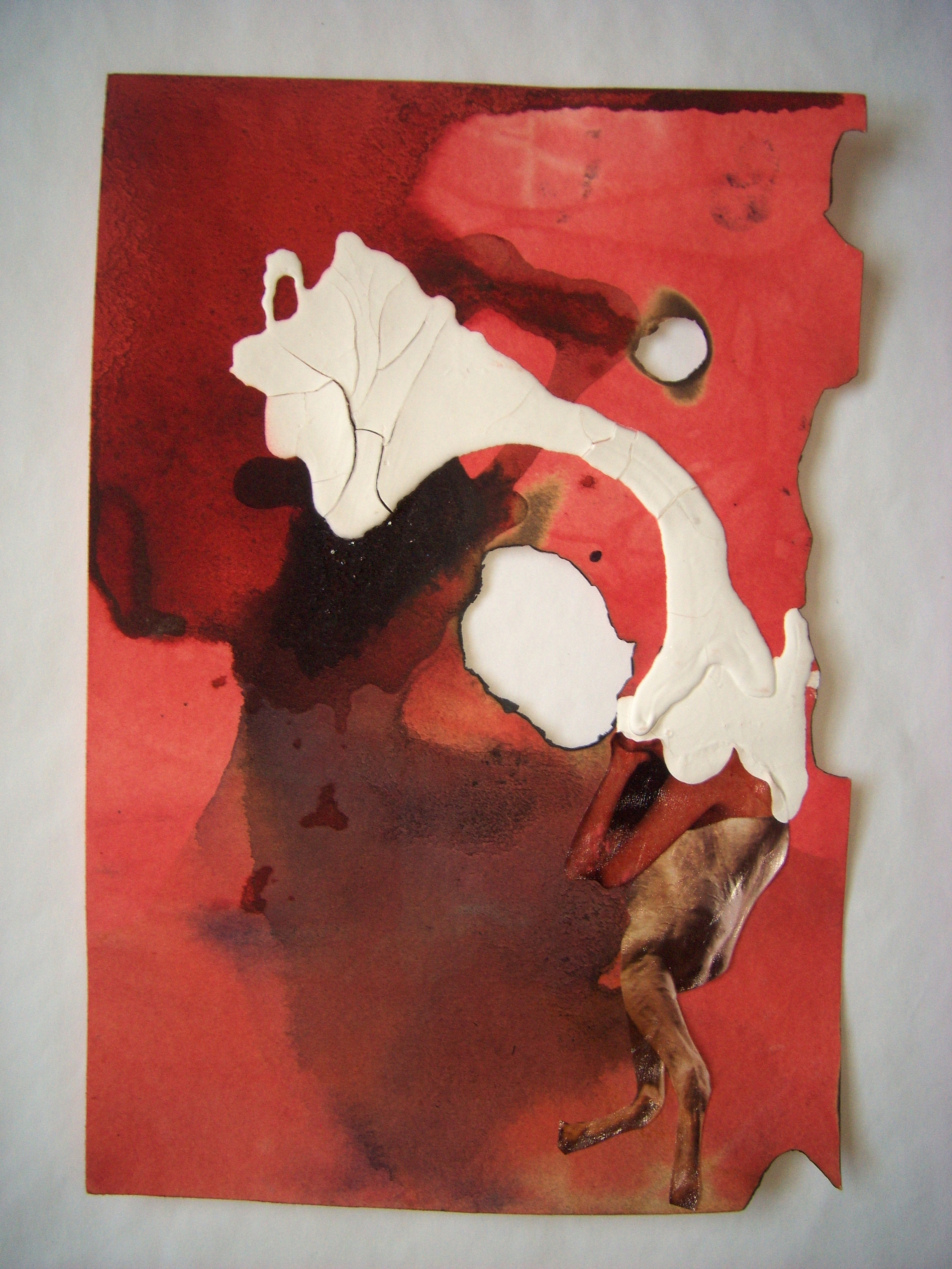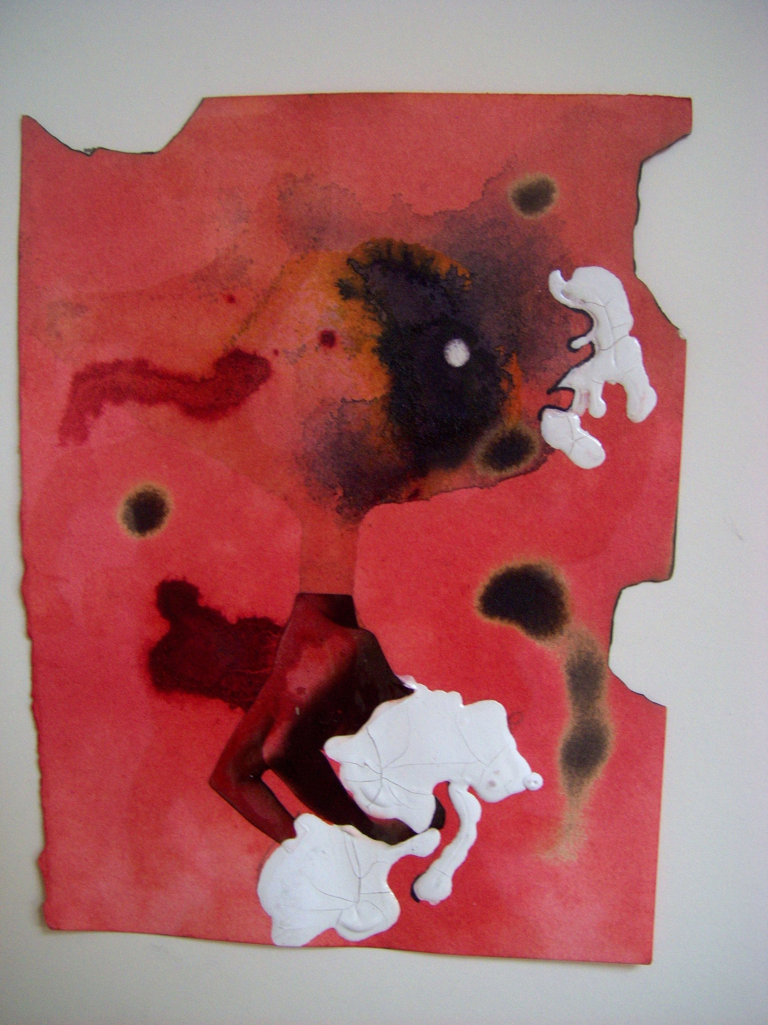 coffee, wine, ink, collage on cooked paper