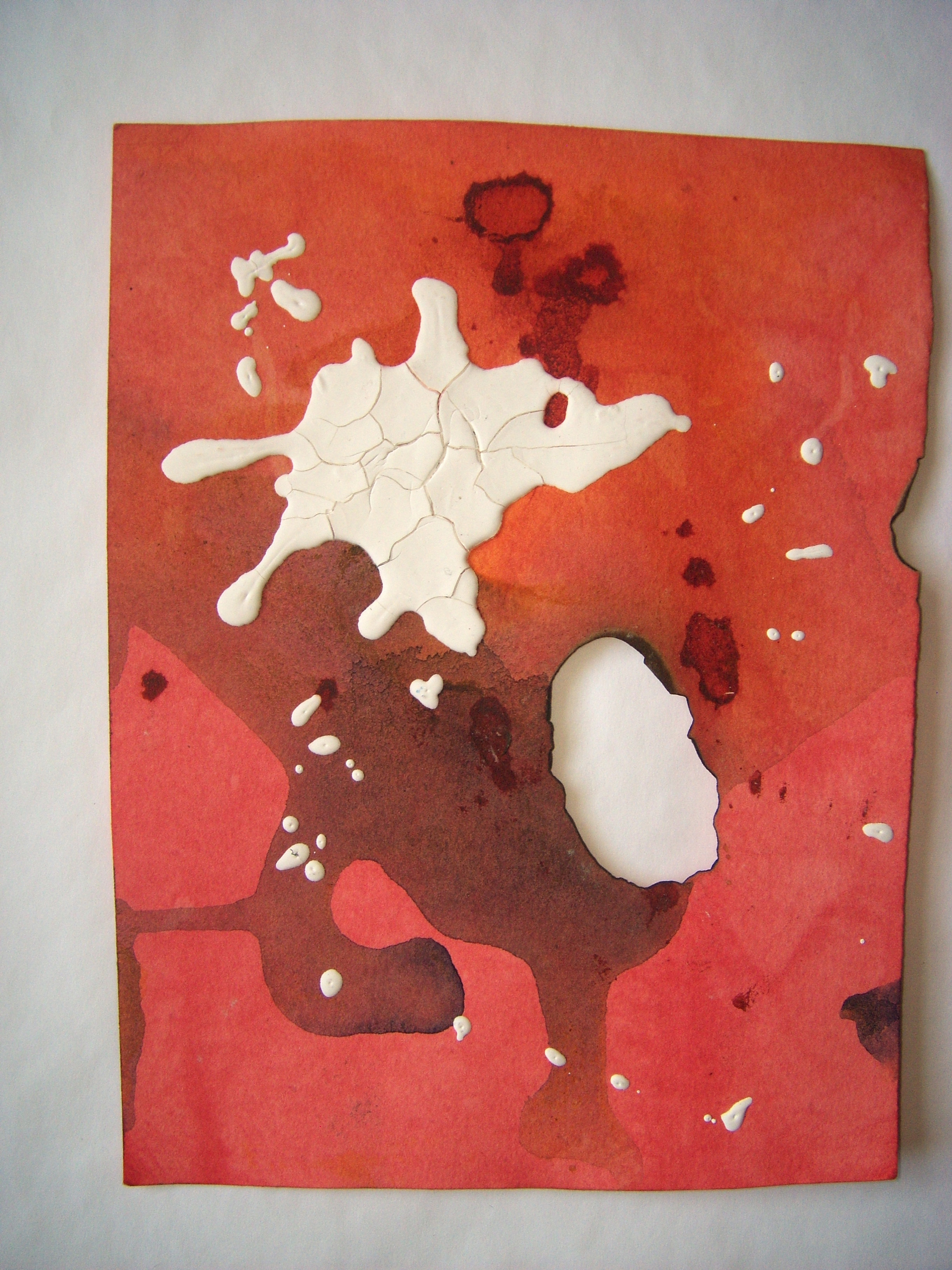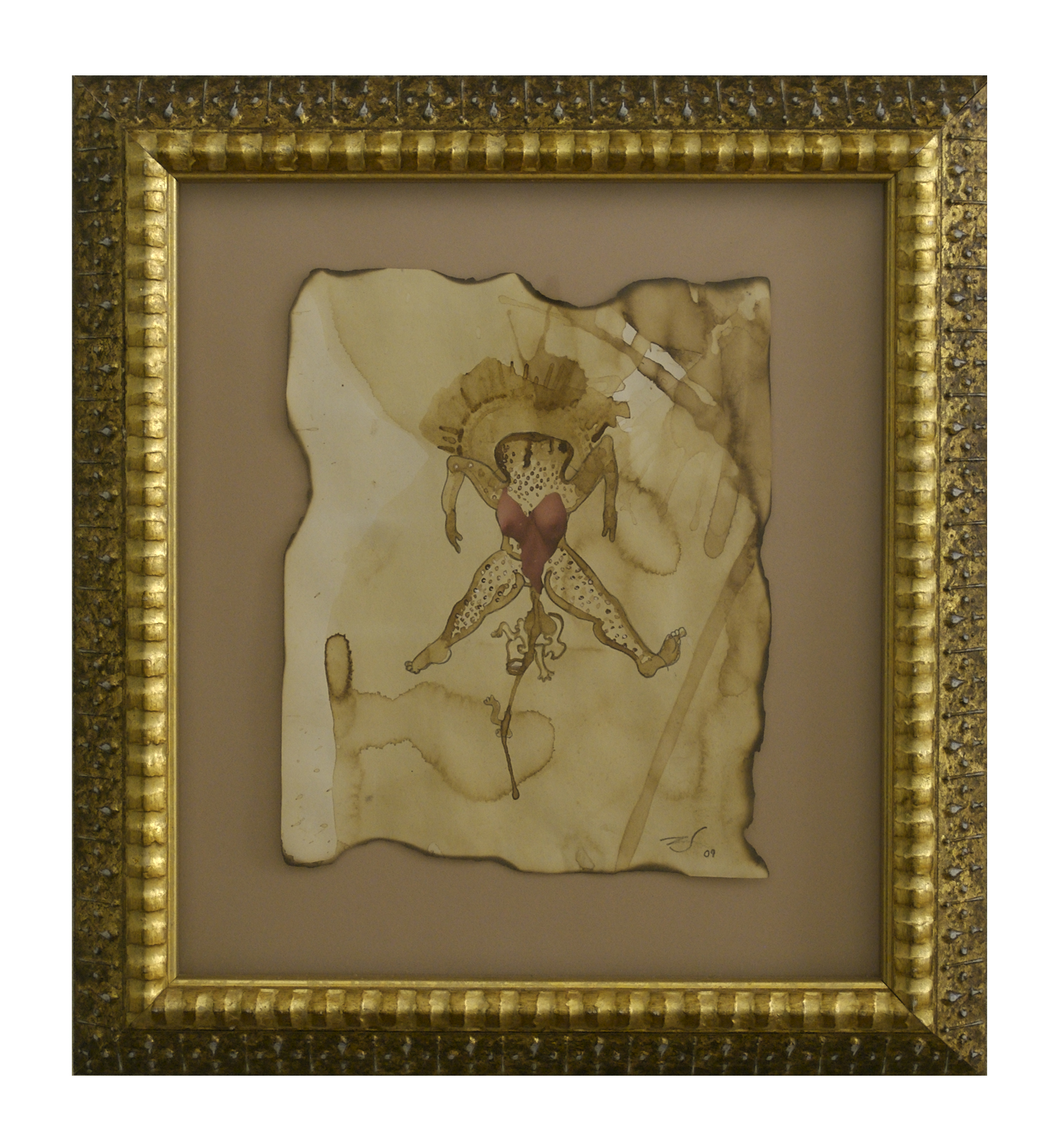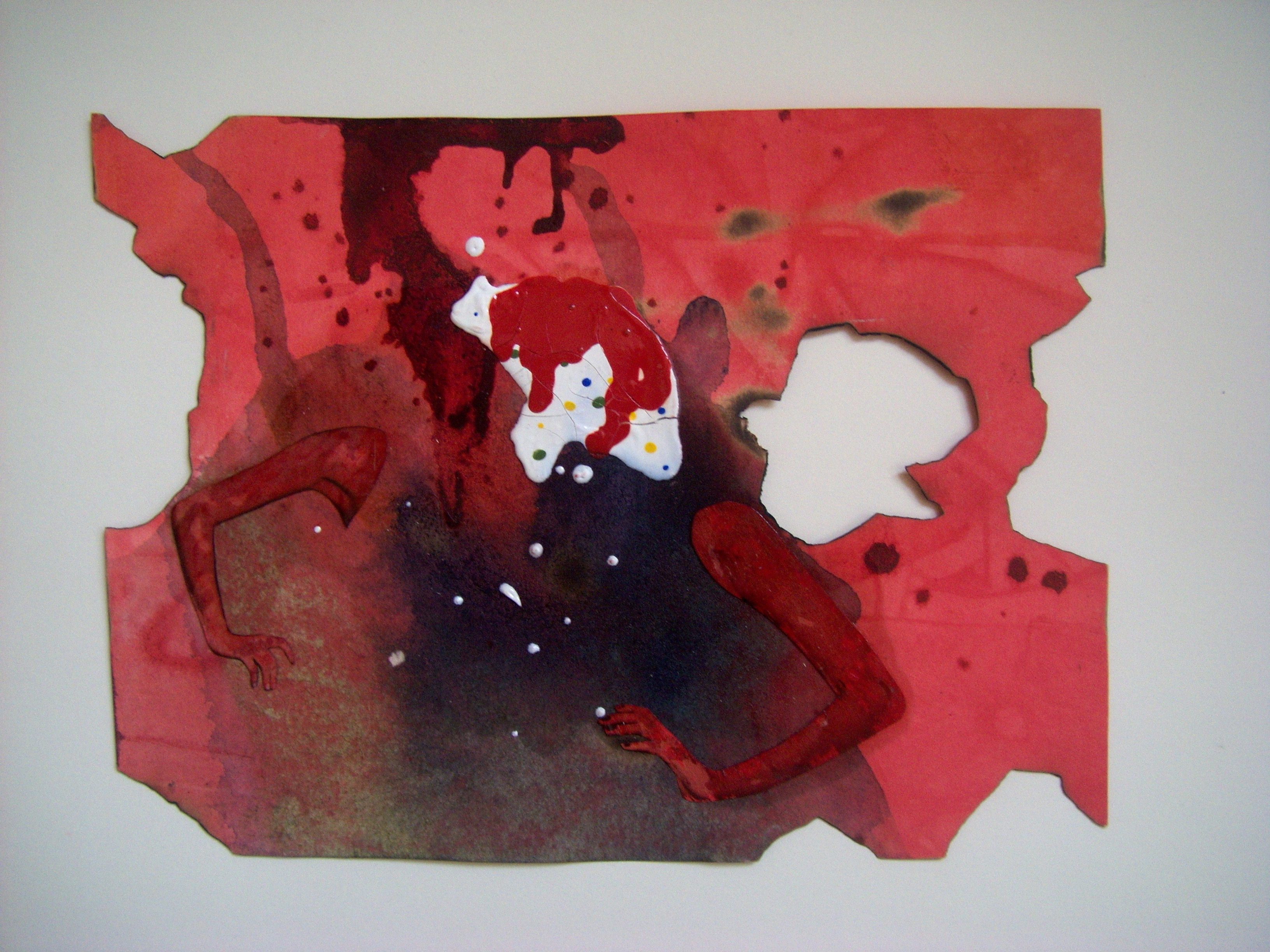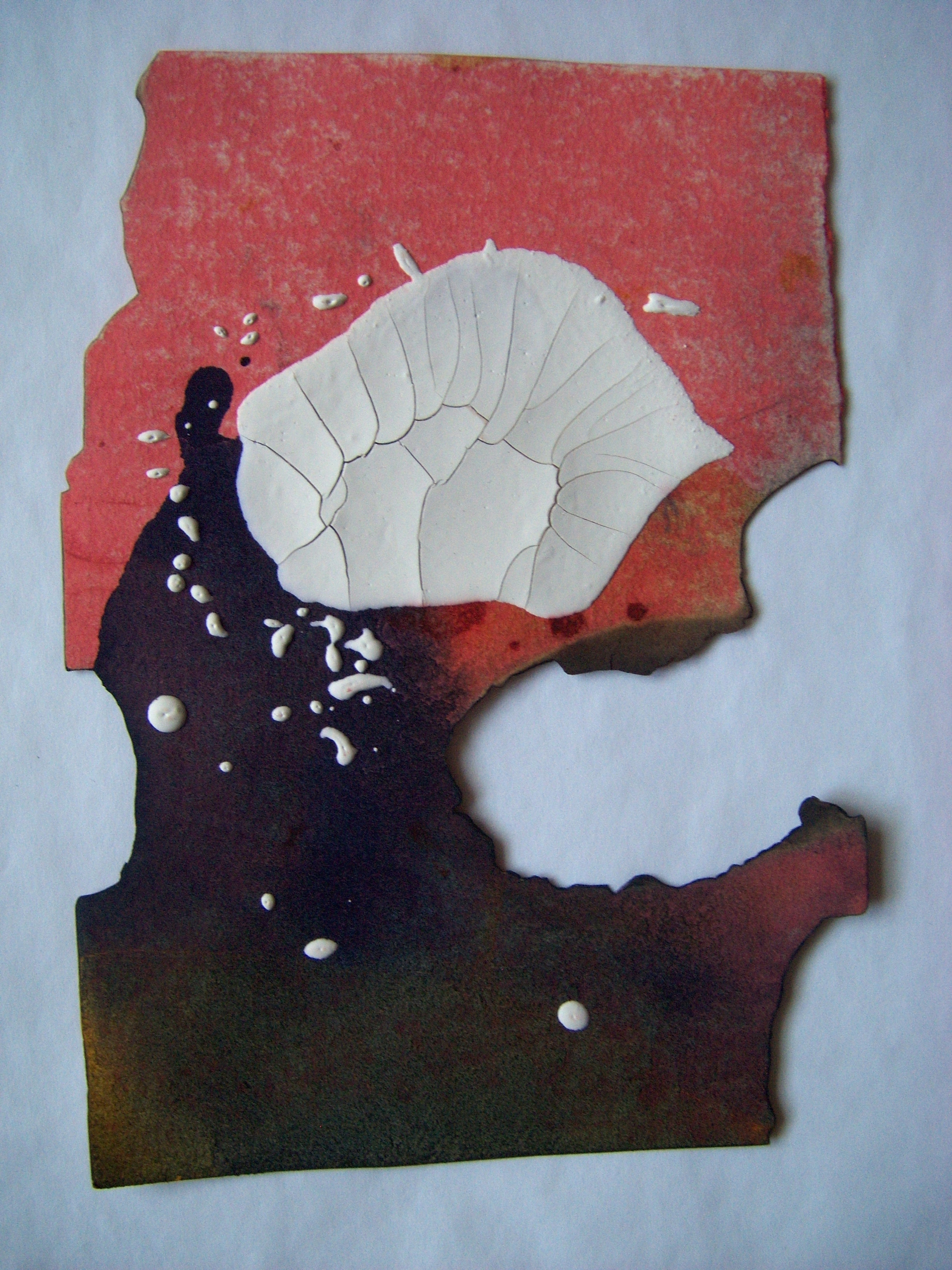 coffee, wine, ink, collage on cooked paper