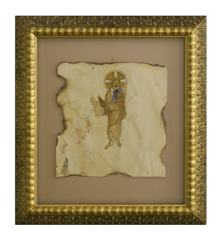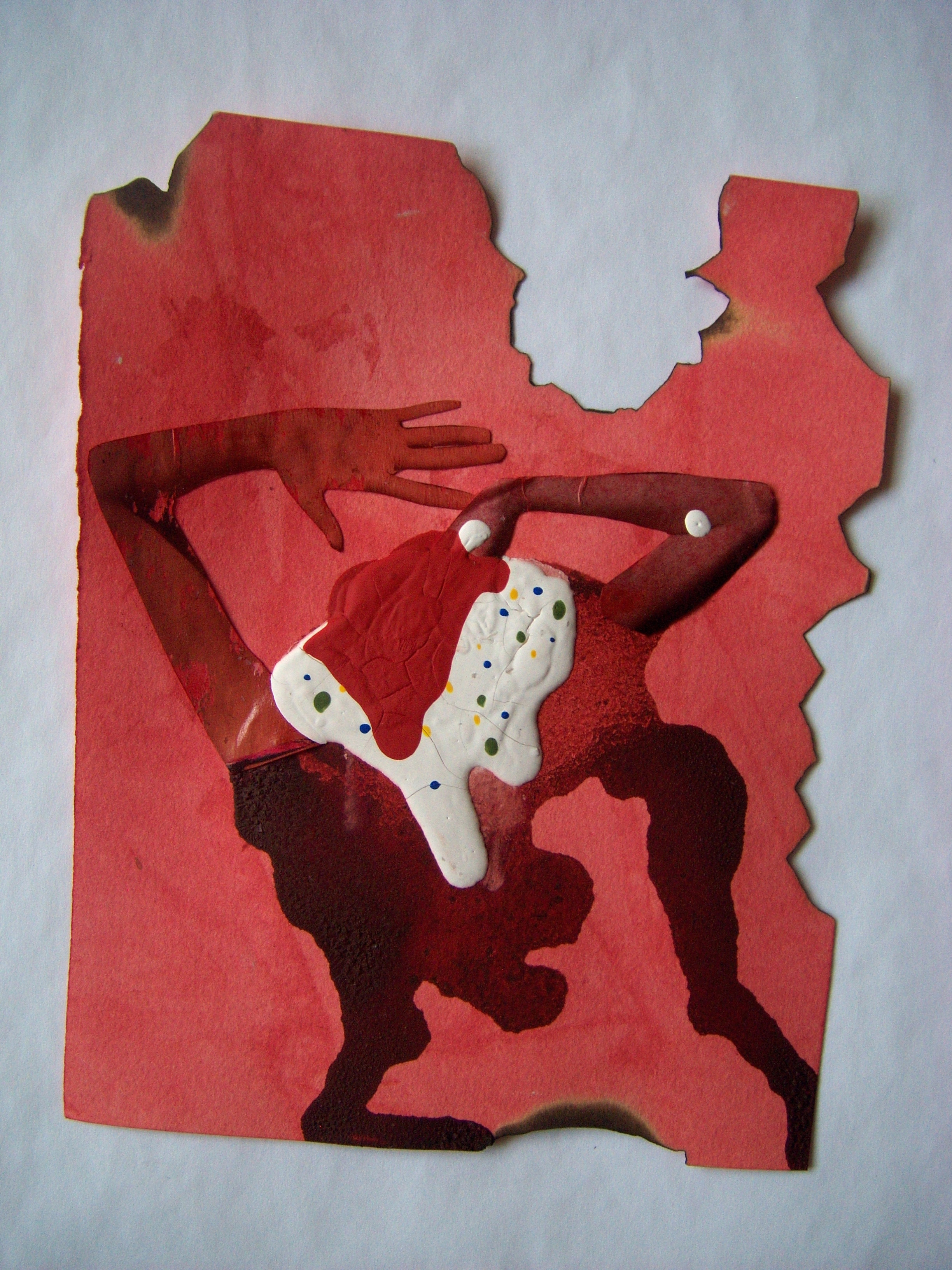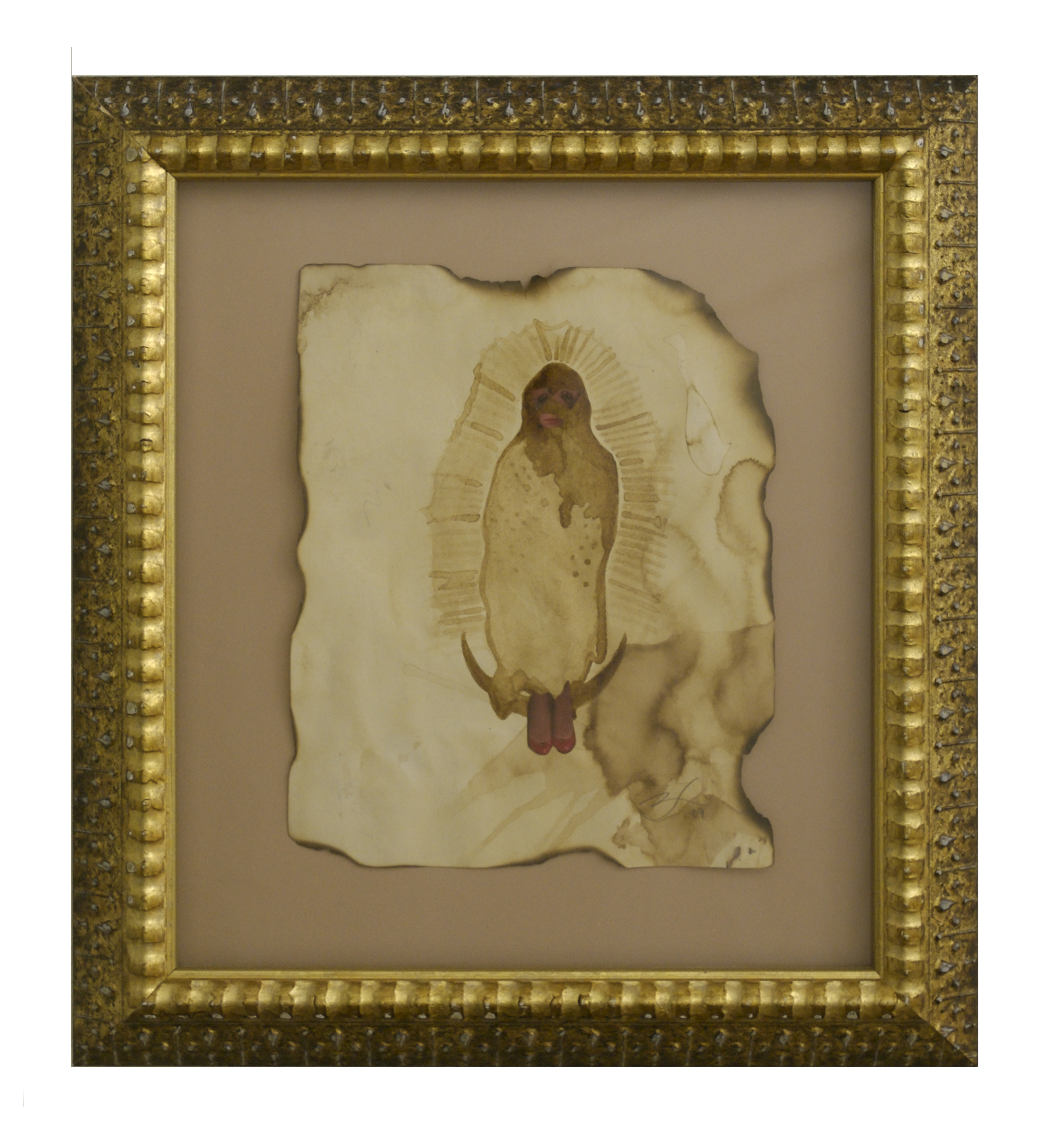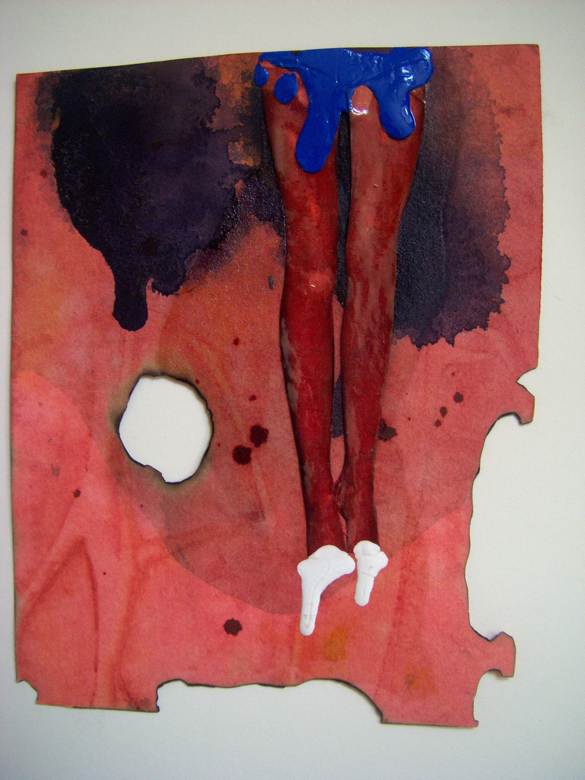 coffee, wine, ink, collage on cooked paper